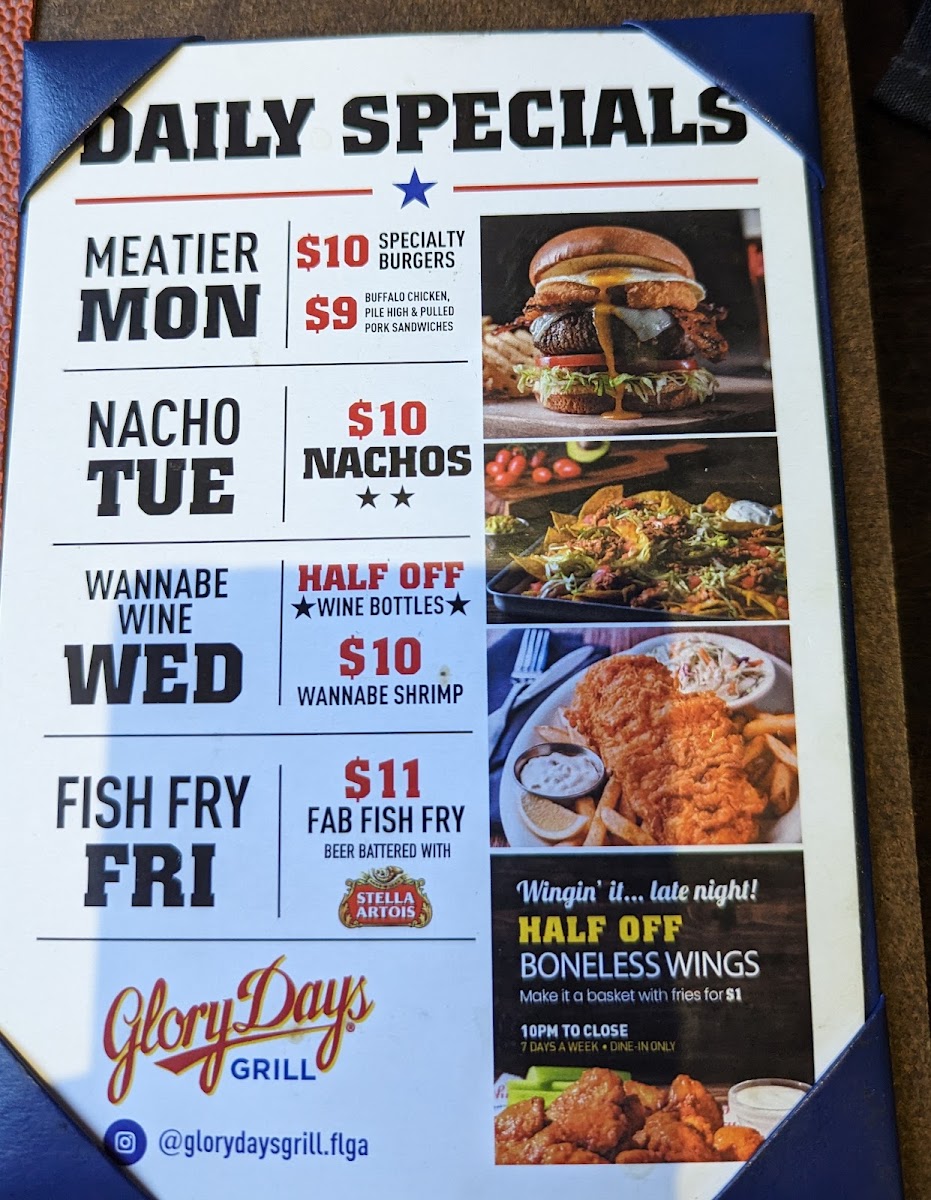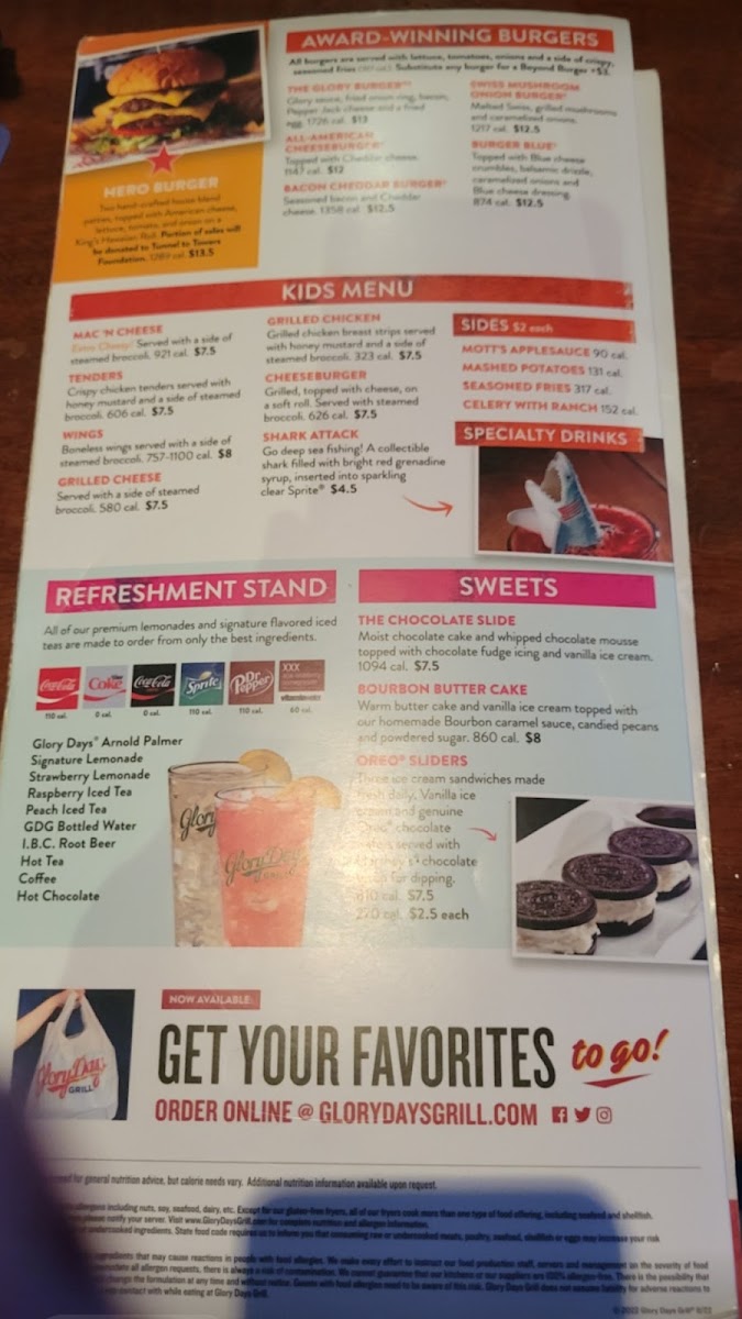 Welcome to Glory Days Grill Bradenton, a vibrant dining spot located at 8253 Cooper Creek Blvd, Bradenton, FL. Known for its warm atmosphere and friendly service, this establishment excels in delivering a variety of delicious menu options. As you browse the menu, you'll discover everything from crispy wings and hearty sandwiches to mouthwatering salads, all crafted with care.